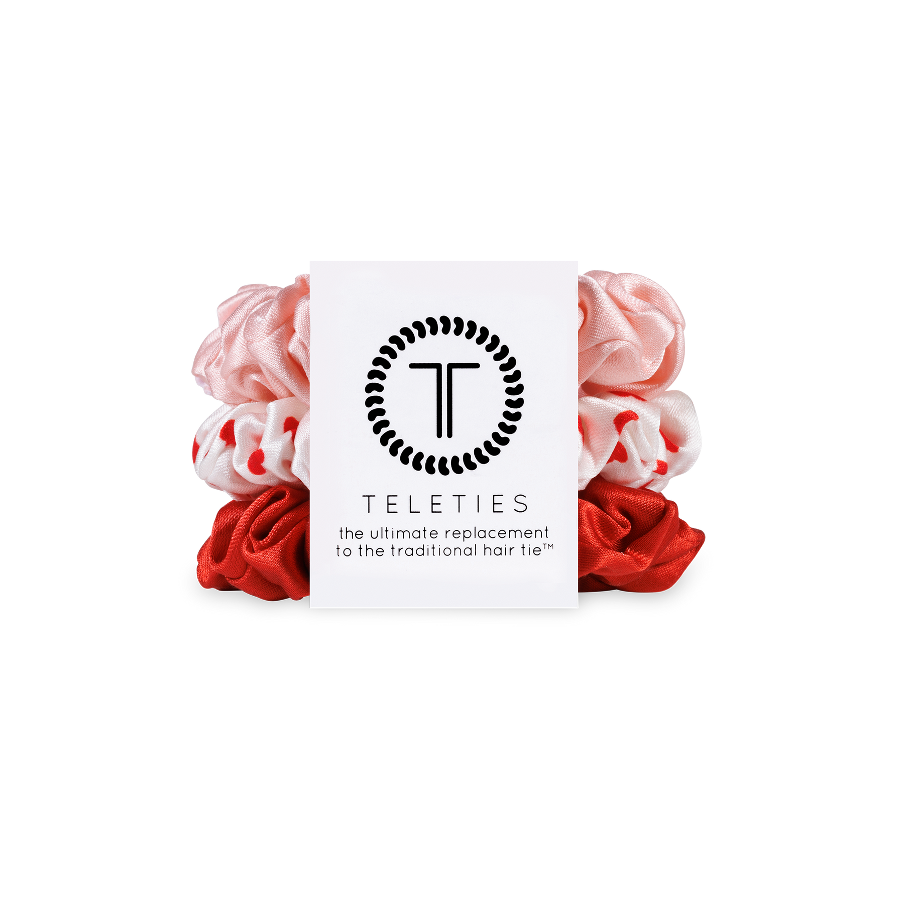 To Have and To Hold for years and years to come! These adorable Valentine's Day Silk Scrunchies by TELETIES are sure to be a staple in your accessory collection for many more Valentine's Days to come! Key Features: Great for sleeping: All TELETIES Scrunchies feature our game-changing spiral hair tie inside, giving you that secure hold that you love! 100% Natural Silk: TELETIES Silk Scrunchies are not only comfortable and cute but created from top-of-the-line natural silk! You will be ready to celebrate Valentine's Day in style with your new To Have and To Hold Scrunchies. The small-size scrunchie is best for thin to medium-thickness of hair.