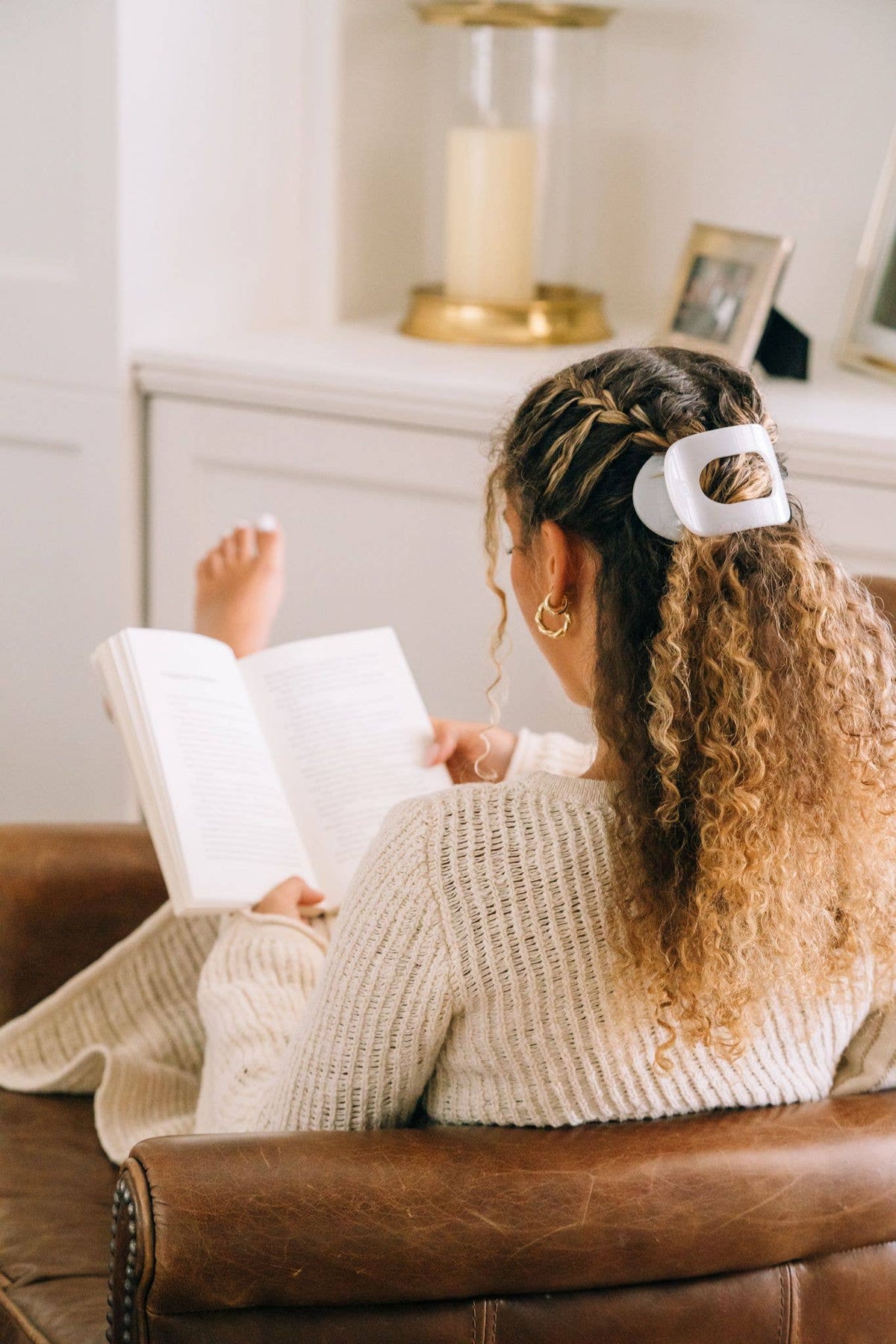Unwind and relax with the new TELETIES Flat Round Hair Clip! Designed with our same innovative material that is nearly unbreakable, this clip is perfect for lying down, doing yoga or simply laying back without discomfort.