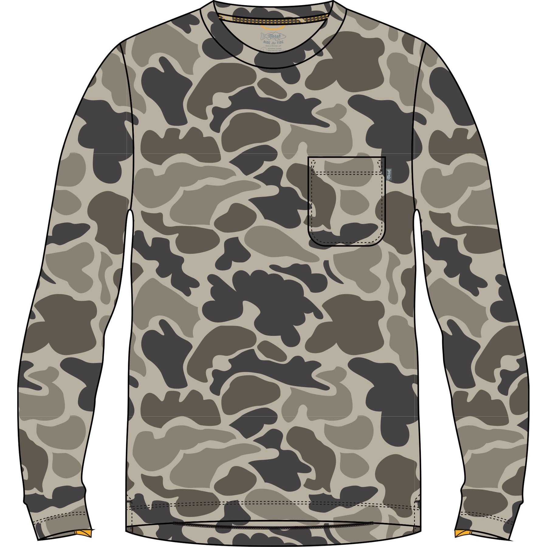 The most comfortable year round Pamlico performance fabric now in vintage washed Mallard Camo. Made to feel buttery soft like one of your favorite t-shirts with all the performance attributes needed for a long day on the water.