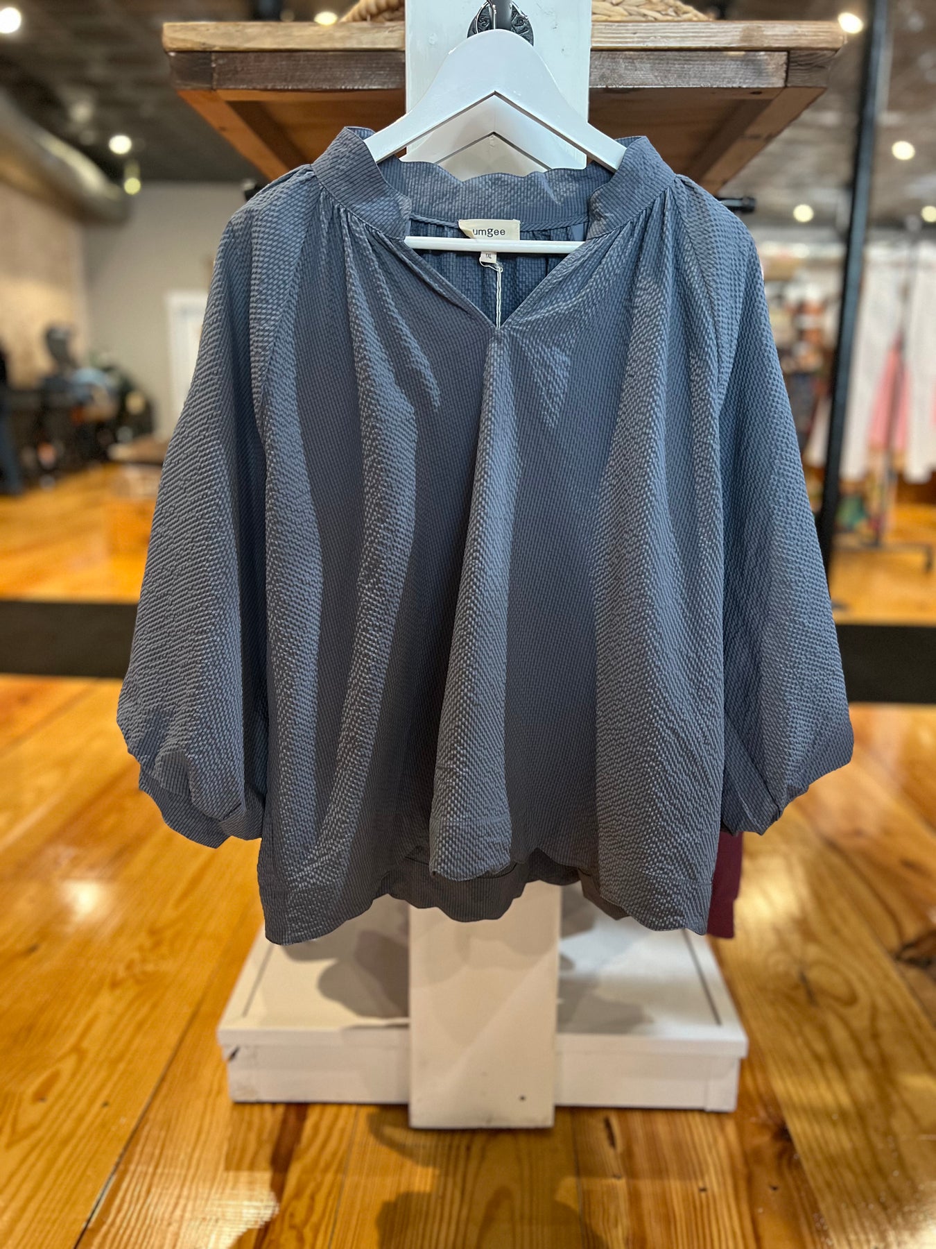 Vneck 3/4 Balloon Scollop Top